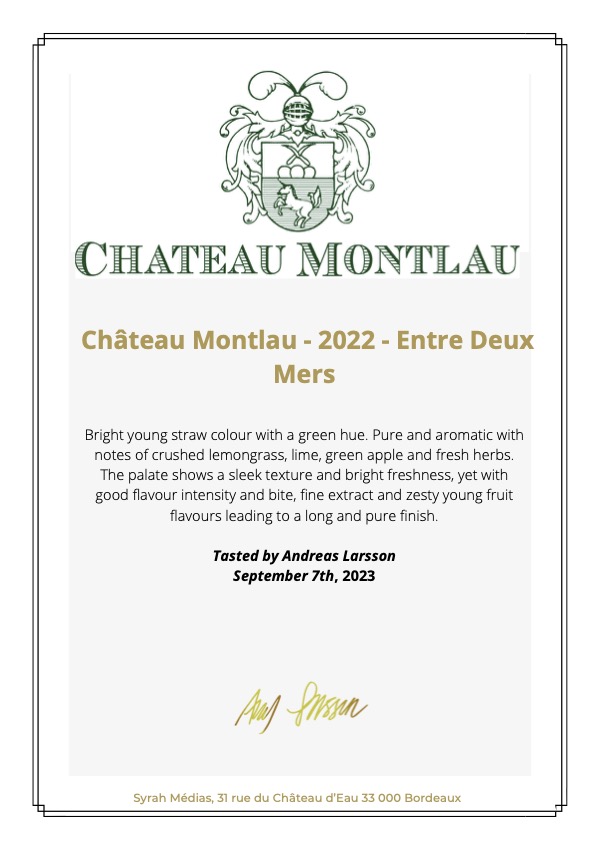 « Avec une large fraicheur citronnée, une touche de menthe et de poivre blanc au nez, ce vin gourmand et généreux a tout pour plaire. Souple, ultra-expressif, entre fruits blancs et agrumes, il déroule avec finesse et suavité en bouche. Un délice en perspective avec une sole meunière ! »